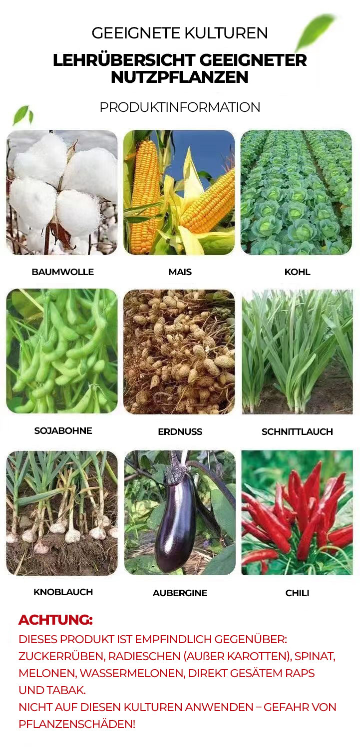 - Verbessert Ernteerträge: Sorgt für saubere Felder und ein besseres Anwachsen der Kulturpflanzen.