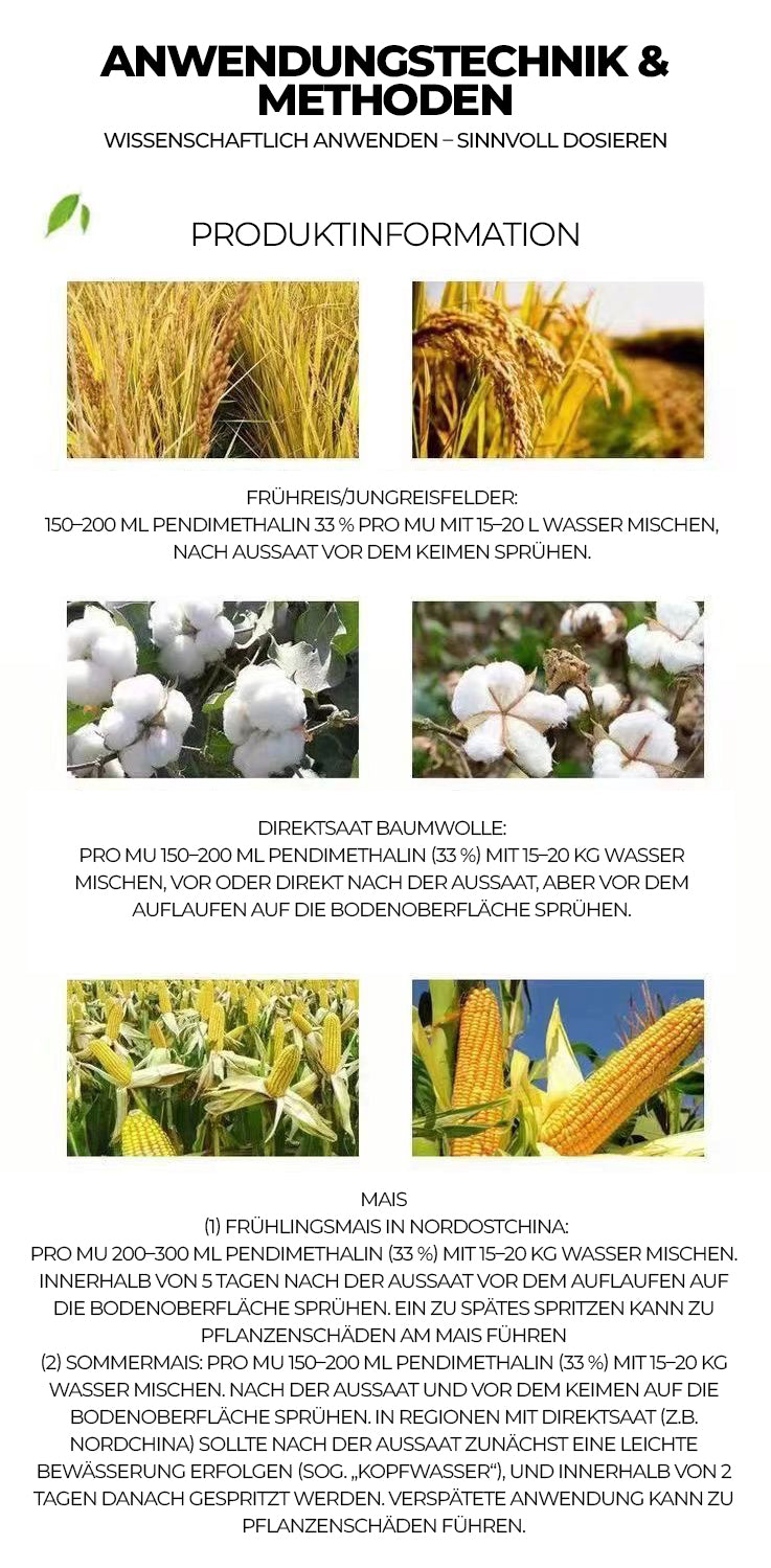 Dieses 33%ige Pendimethalin-Herbizid ist eine wirksame Vorauflauf-Lösung zur Unkrautbekämpfung, die speziell zur Kontrolle von einjährigen Gräsern und bestimmten zweikeimblättrigen Unkräutern entwickelt wurde. Die Formulierung als emulgierbares Konzentrat (EC) ermöglicht eine einfache Mischung und Anwendung in Baumschulen, landwirtschaftlichen Flächen und Landschaftsbereichen. Hergestellt unter der Marke Zhi Tian Bu, ist dieses nicht als gefährlich eingestufte Produkt eine zuverlässige Wahl für Landwirte und Gärtner, die eine wirksame Unkrautprävention ohne importierte Chemikalien suchen.